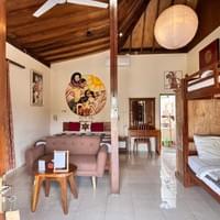 Deze kamers kunnen samen worden gehuurd als een gezellige Family Bungalow, ideaal voor gezinnen of vrienden die samen willen genieten van hun verblijf.Familie Joglo