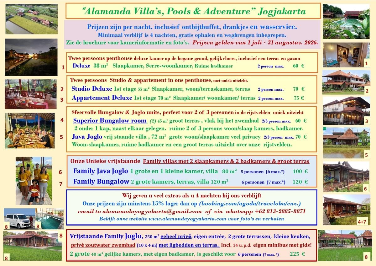 Leuk dat u Onze Villa’s en de prachtige locatie van Alamanda Villa Yogyakarta bekijkt momenteel.